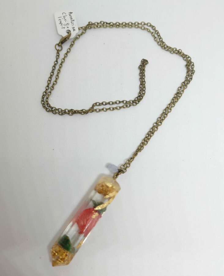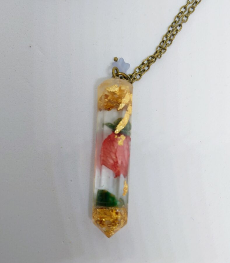 Chaque pendule est réalisé de façon artisanale dans mon atelier, chaque modèle est donc unique. Les pendules sont réalisés en résine, feuille d’or, paillettes pour refléter la lumière et fleurs séchées. Chaque fleur séchée est délicatement choisie pour sa signification. Des gemmes choisies délicatement par mes soins y sont incorporées.