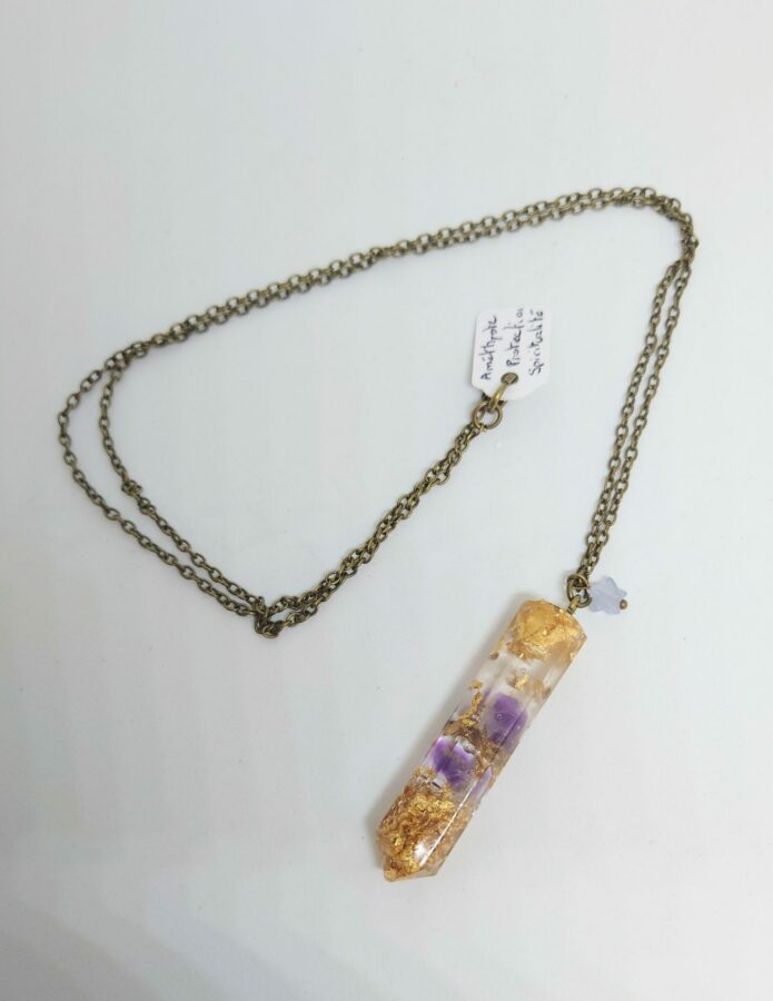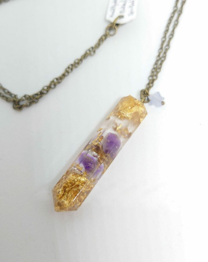 Dans ce modèle, l’Améthyste pour la spiritualité et la Lavande pour la protection.