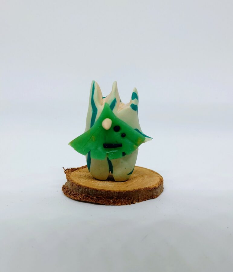 Petite figurine Korogu en pâte polymère, réalisée à la main.