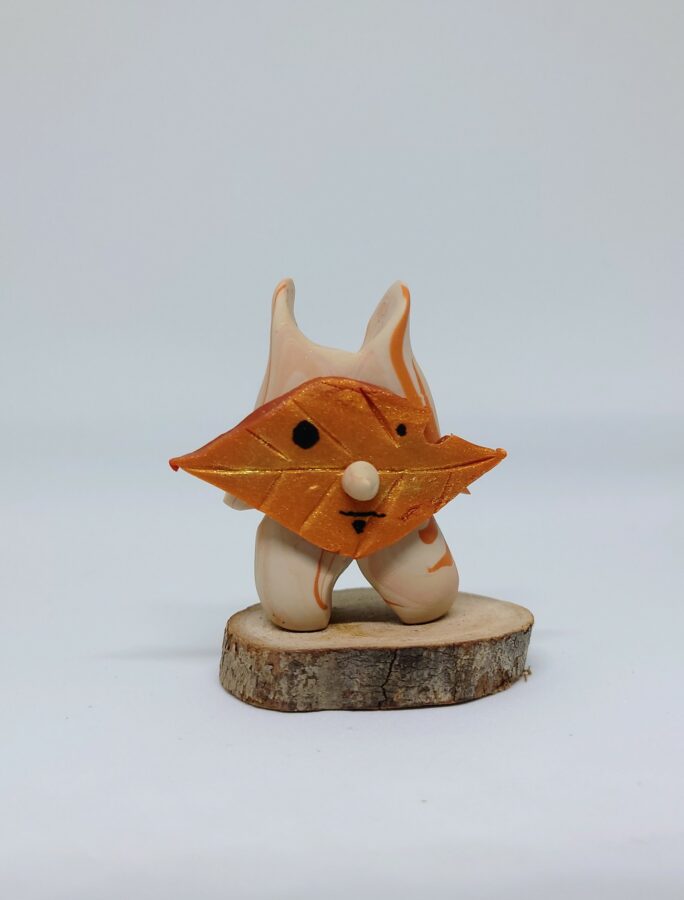 Petite figurine Korogu en pâte polymère, réalisée à la main.