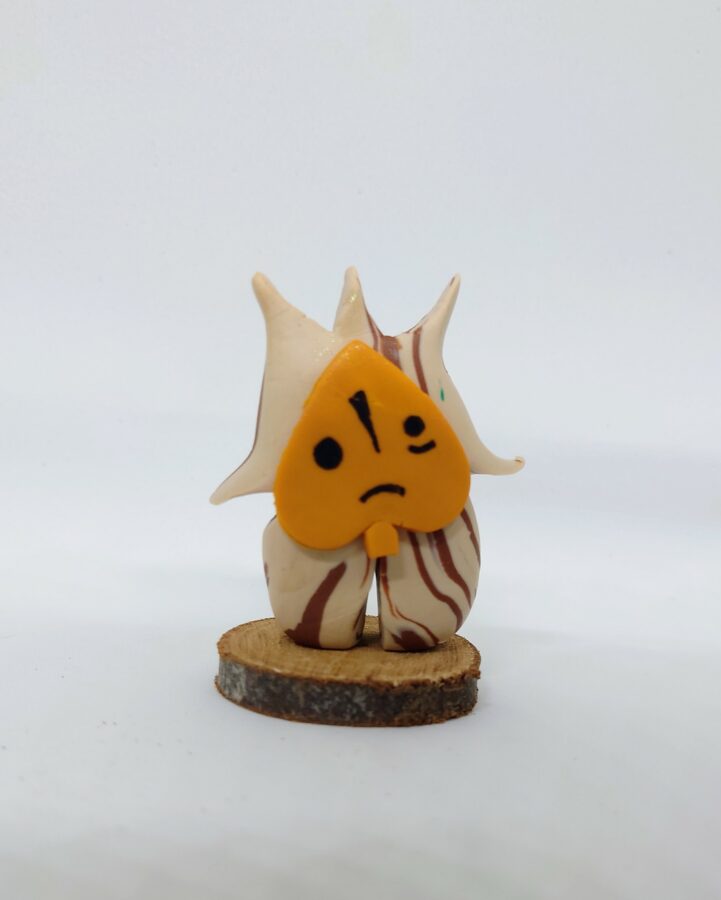 Petite figurine Korogu en pâte polymère, réalisée à la main.
