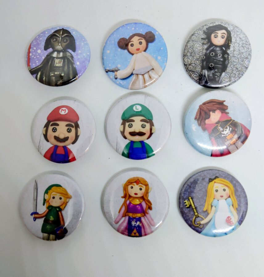 Les badges sont des illustrations personnelles de mes figurines.